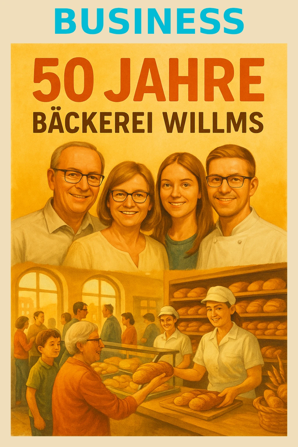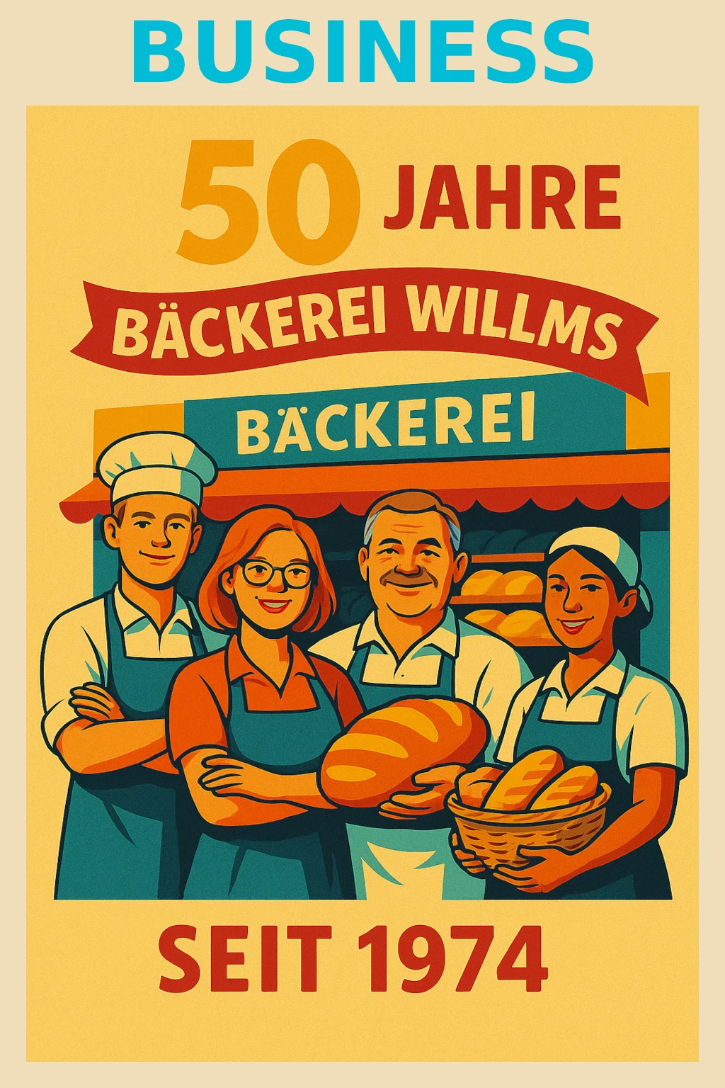 – Titel und Ereignis (z. B. „25 Jahre Bäckerei Mustermann“)