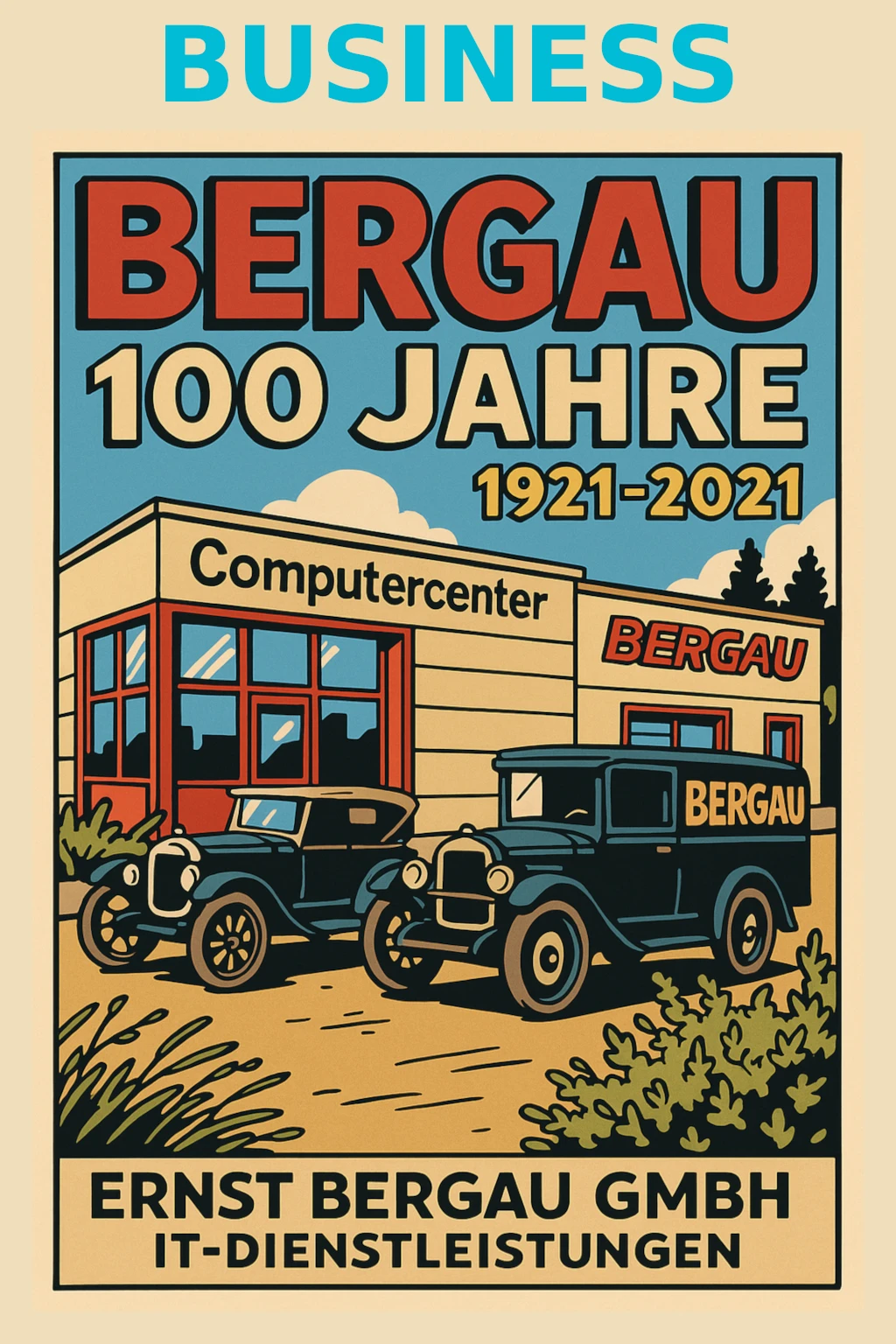 Das BUSINESS Poster verbindet modernes Grafikdesign mit emotionaler Unternehmensdarstellung. Ob zum 25-jährigen Firmenjubiläum, als hochwertiges Teamporträt oder für Präsentationen – dieses Poster stellt Ihr Unternehmen kreativ, sympathisch und professionell dar.